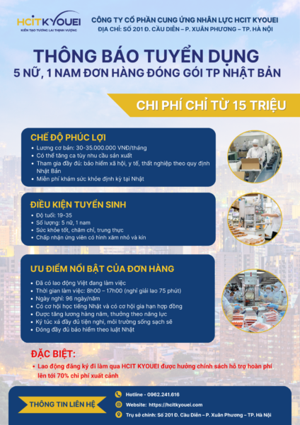 Nếu bạn đang tìm kiếm một công việc ổn định, dễ trúng tuyển và có chế độ phúc lợi rõ ràng tại Nhật Bản, đơn hàng đóng gói thực phẩm chắc chắn là lựa chọn không nên bỏ qua.