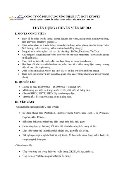 🔔 TUYỂN DỤNG CHUYÊN VIÊN MEDIA